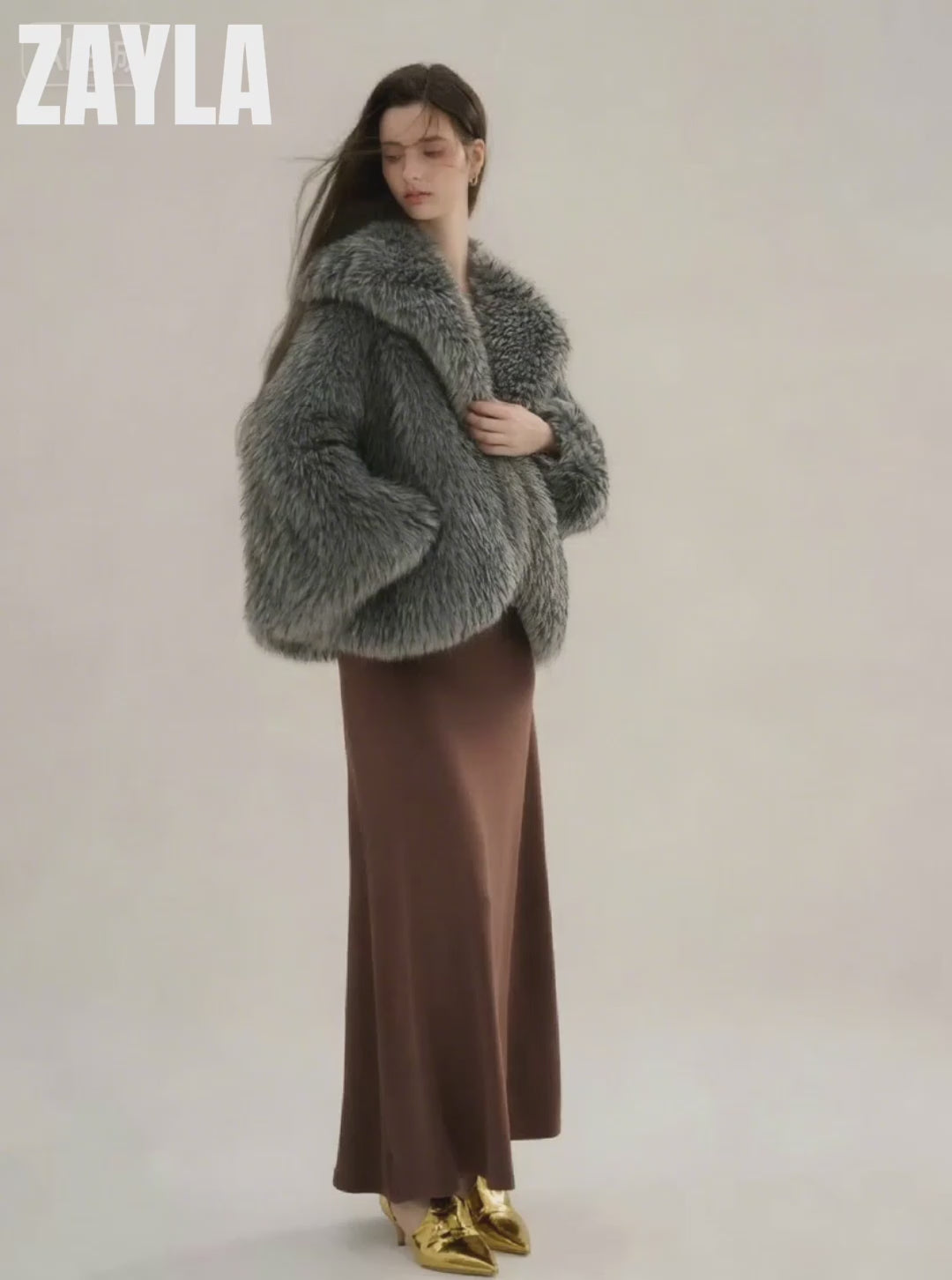 Zayla Women’s Brown Faux Fur Jacket – Oversized Warm Winter Coat, Soft Plush Short Fur Outerwear