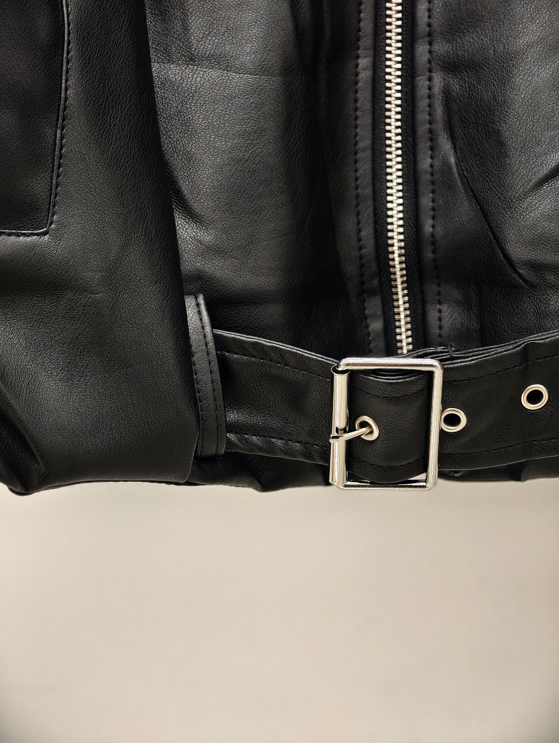 Women’s Faux Leather Bomber Jacket – Oversized Zip-Up Jacket with Belted Hem, Minimalist Street Style Outerwear