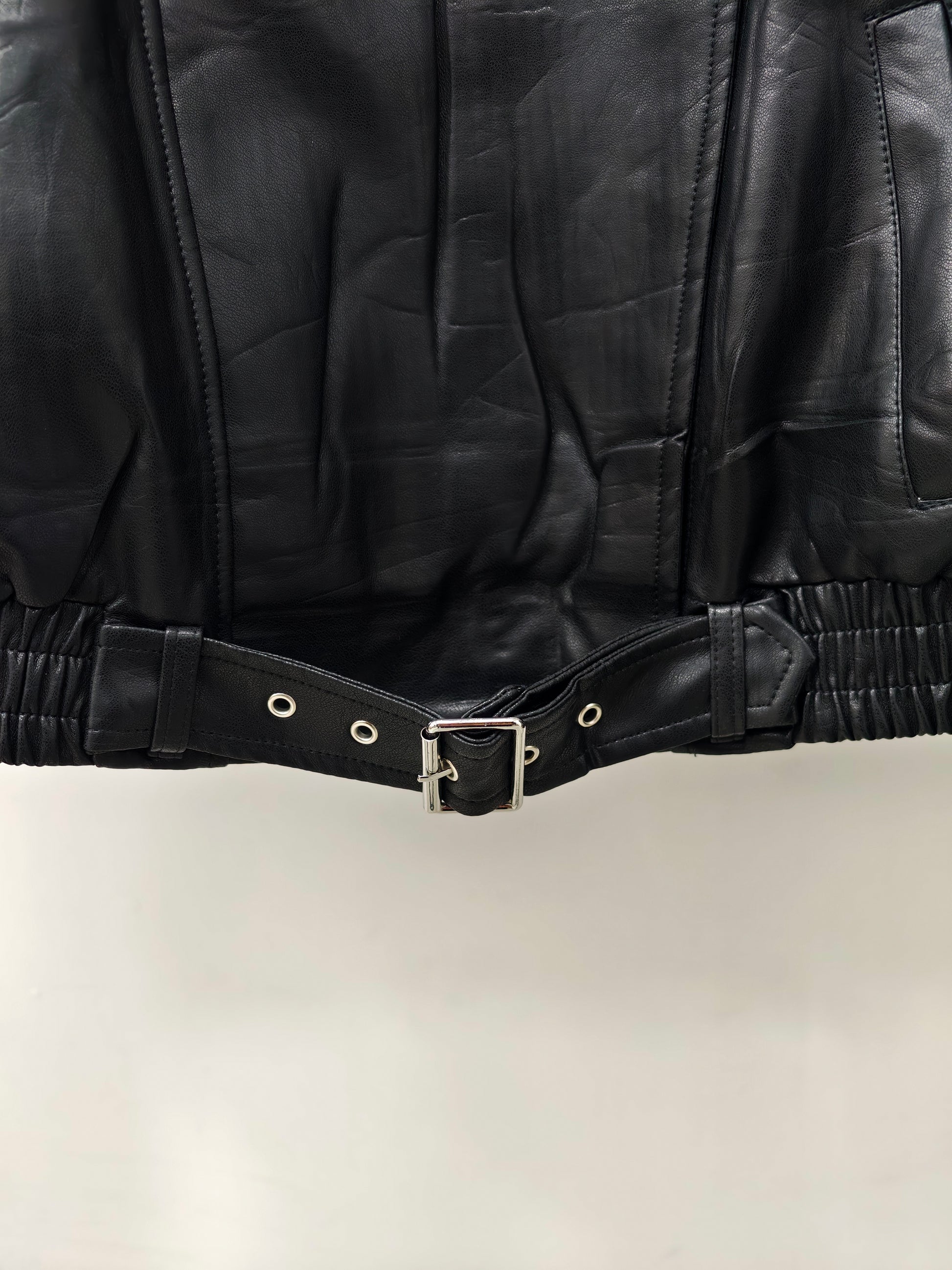 Women’s Faux Leather Bomber Jacket – Oversized Zip-Up Jacket with Belted Hem, Minimalist Street Style Outerwear