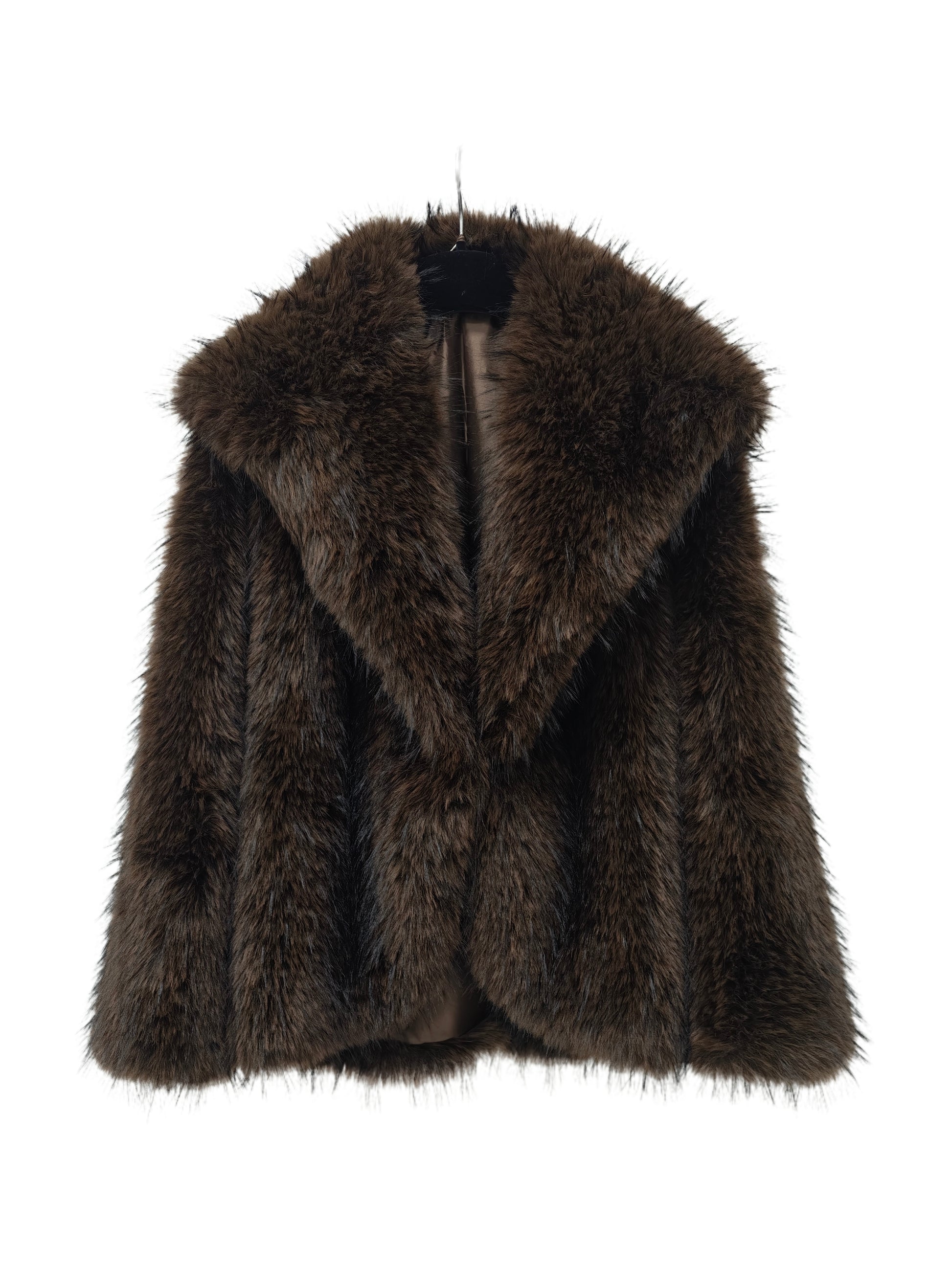 Zayla Women’s Faux Fur Short Jacket – Brown Fluffy Winter Coat, Soft Warm Plush Aesthetic Outerwear