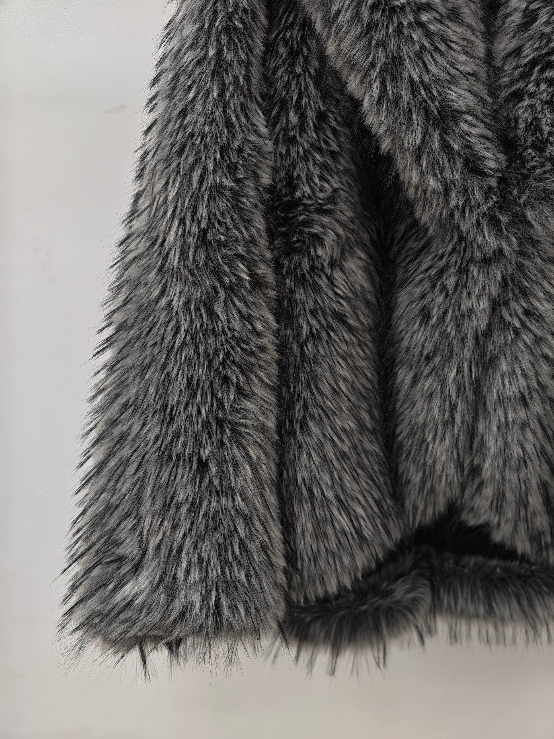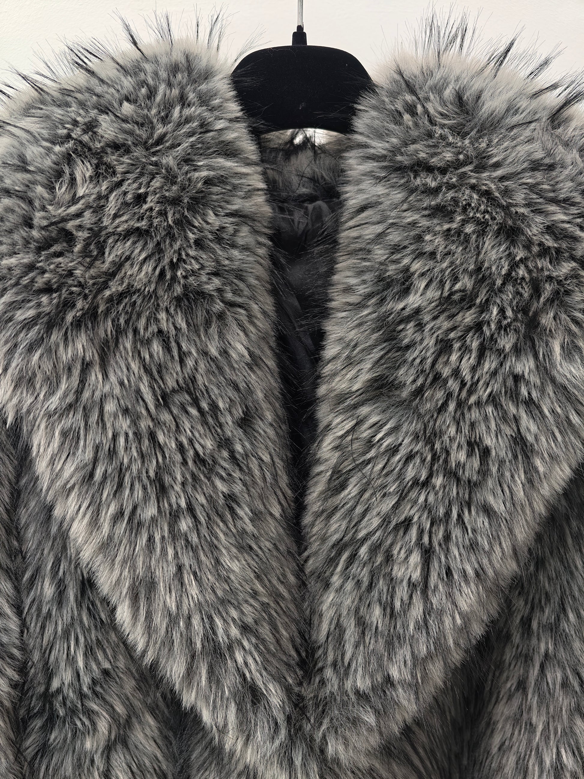 Stay warm and stylish with this ultra-fluffy grey faux fur jacket. Thick plush material creates a voluminous high-fashion look while keeping you cozy. Ideal for winter outfits, content creation, travel, and chic everyday styling. A perfect mix of warmth and trend.