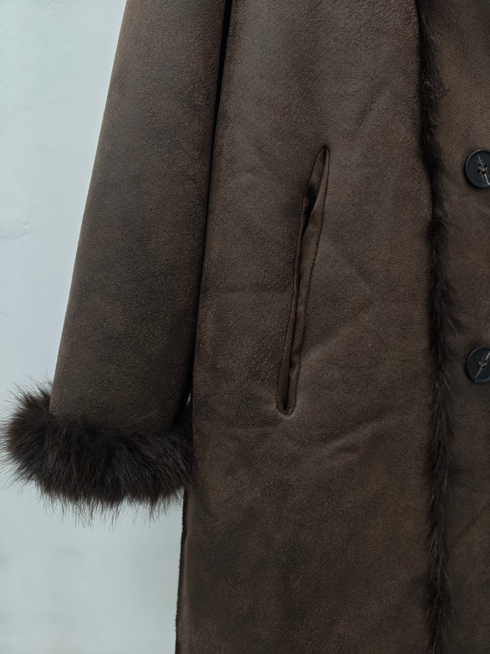 Two looks in one coat. This reversible faux fur and shearling design gives you style flexibility for any winter mood. Soft, warm, and ultra-cozy with a fluffy collar and long silhouette. Ideal for cold-weather fashion, casual wear, and classy winter layering. A must-have statement coat for the season.